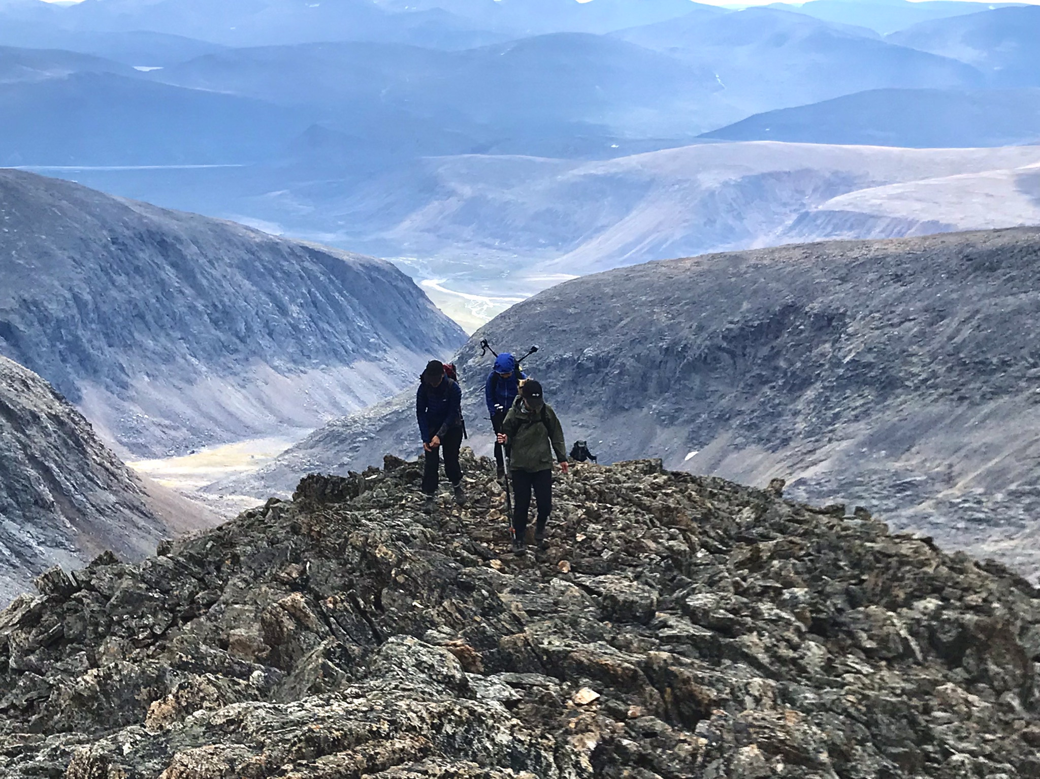 En fonction de la météo, vous explorerez les vues époustouflantes des monts Torngat, ses fjords, ses vallées, ses glaciers, ses chutes et ses lacs, ou vous commencerez l'ascension depuis le camp de base de Kauvvik jusqu'au gigantesque mont Kauvvik et ses 1646 mètres d'altitude. Notez que certaines sections de l'ascension sont plus exposées et que le terrain est très rocailleux avec des blocs instables. Au fur et à mesure que vous monterez vers le sommet, la vue spectaculaire vous révélera la magie des Torngats qui s'étendent jusqu'au Labrador. Vous suivrez la crête du mont Kauvvik, équipé de notre matériel d'alpinisme (harnais et casque), encordé deux par deux avec votre guide pour atteindre le sommet. Il faut prévoir une grosse journée pour atteindre le sommet. Une ascension qui peut prendre environ 12 heures.