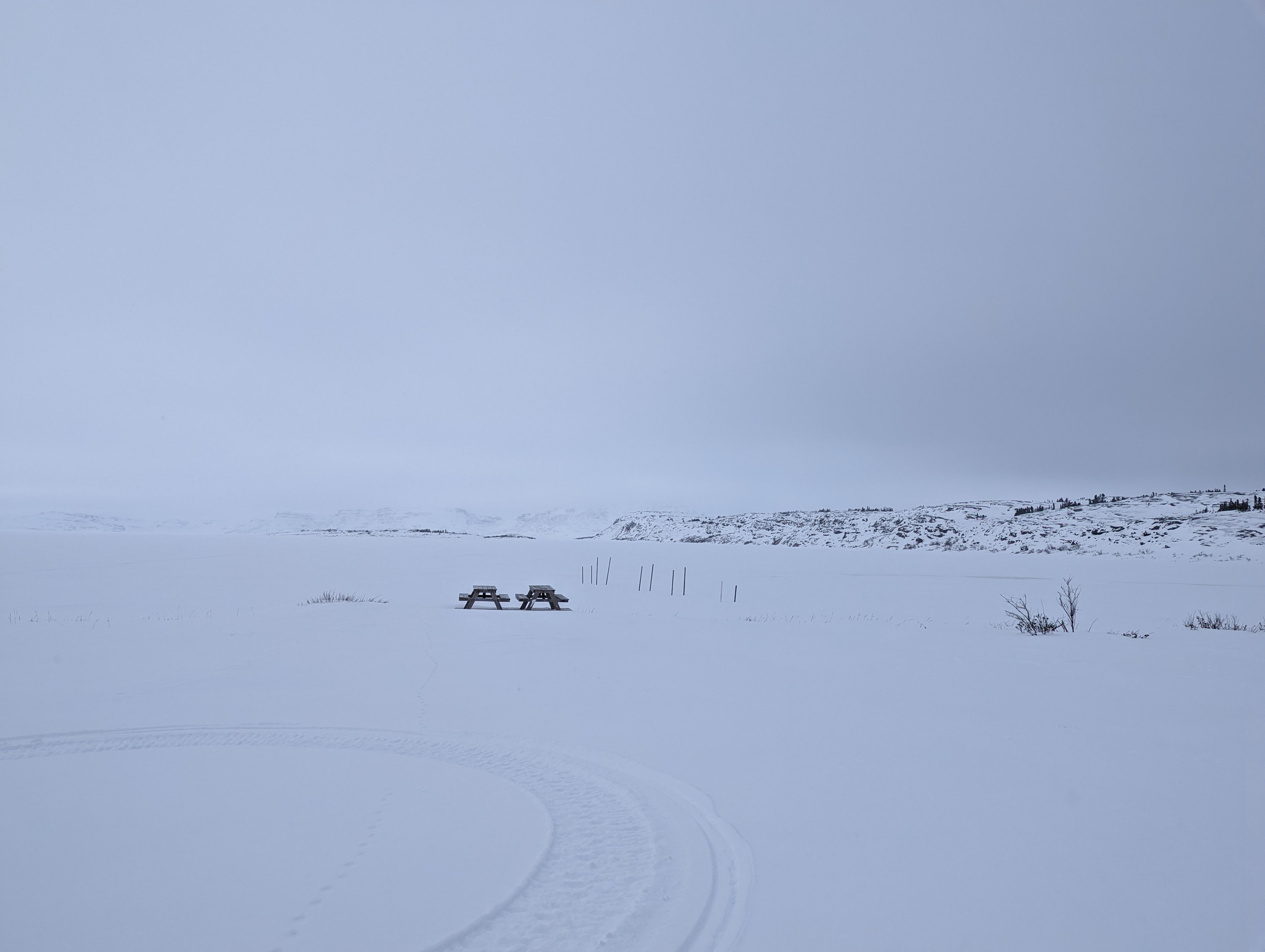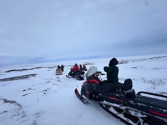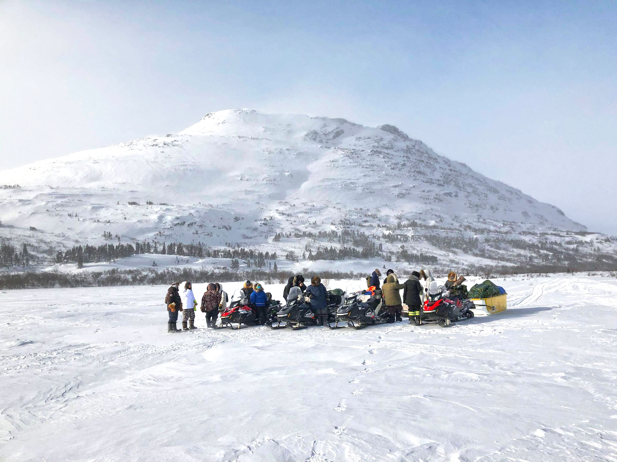 De retour à Umiujaq, vous mangerez et chargerez les motoneiges et qamutik (traîneau traditionnel inuit) avec l’équipement et les bagages pour la semaine. Le trajet d’Umiujaq jusqu'au camp Sukkuk prendra environ une heure. Après 11 kilomètres, une courte pause est prévue à Isuani — qui signifie « au bout du chemin » en inuktitut — porte d’entrée du parc. Le parcours se poursuivra sur 18 kilomètres à travers l’immense lac Tasiujaq enneigé. Une fois installé.e.s dans les camps, la journée se finira autour d’un souper, le moment parfait pour se détendre et partager ses premières impressions.