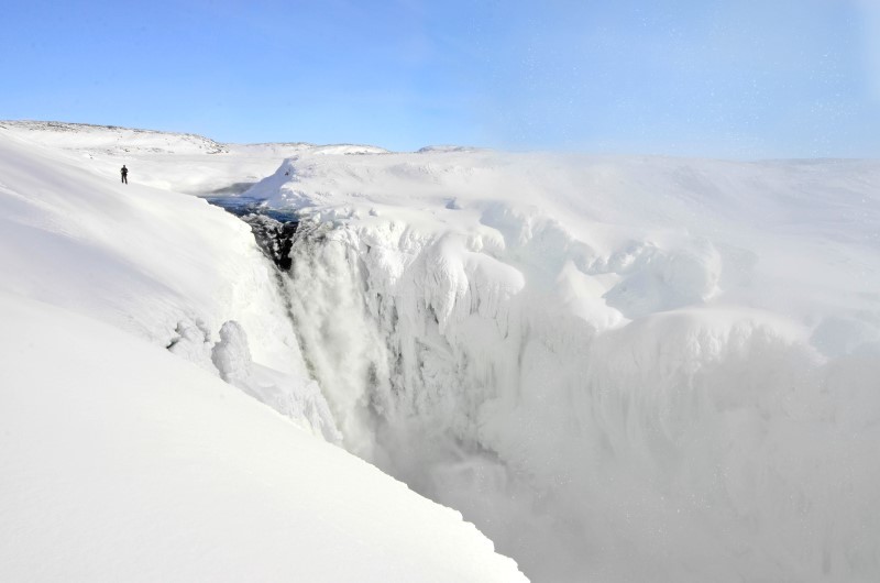 La journée débutera vers 9 h 00 au pavillon du parc, ce sera le moment de s’équiper chaudement avant de partir en motoneige vers la majestueuse chute Nastapoka. Ce site, connu des Inuit depuis des générations, est un lieu privilégié pour l’observation de mammifères marins et terrestres, tels que les phoques communs et les bœufs musqués. Un trajet de 55 kilomètres vous mènera à travers les paysages des îles Gillies et les imposantes cuestas hudsoniennes enneigées longeant la côte.