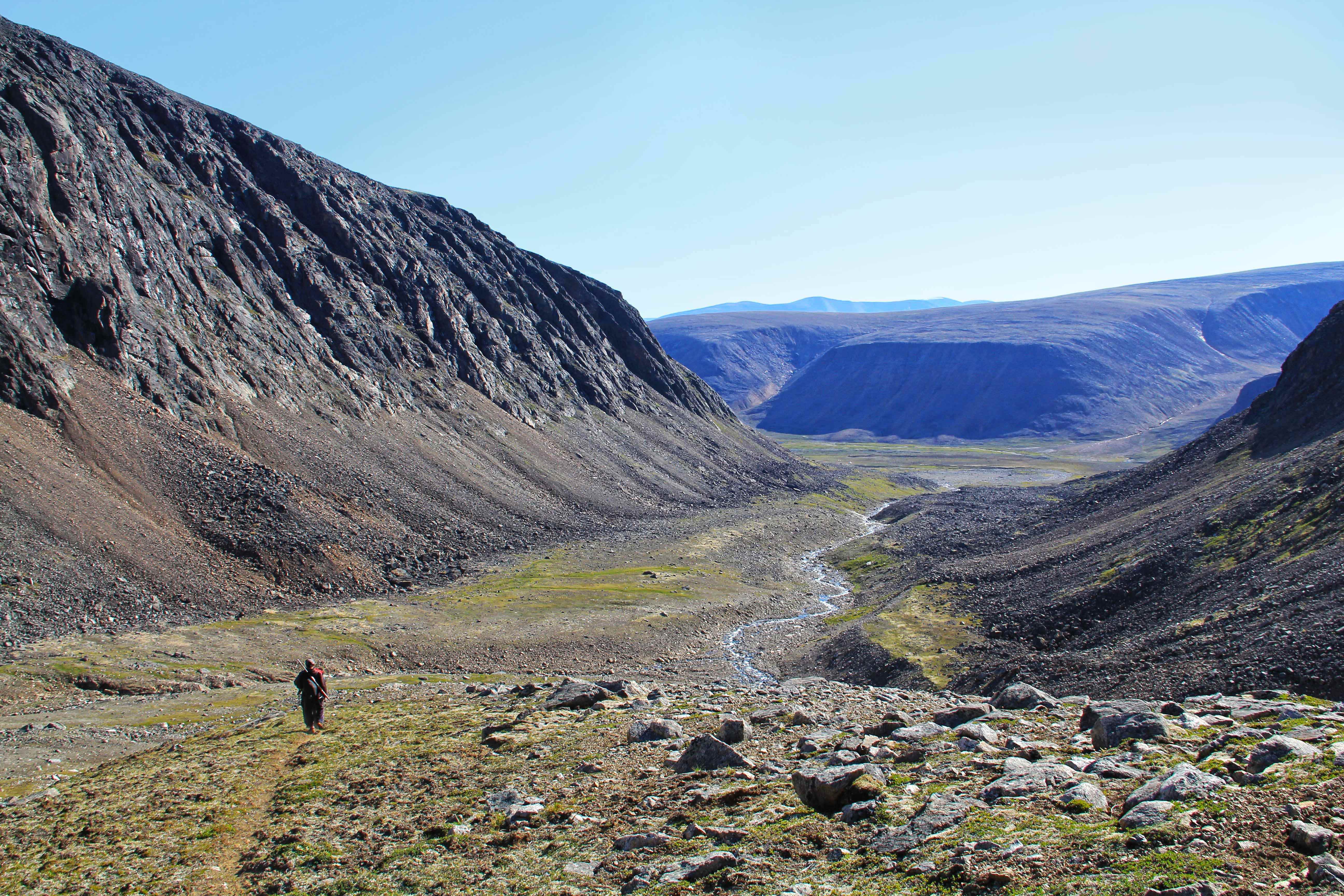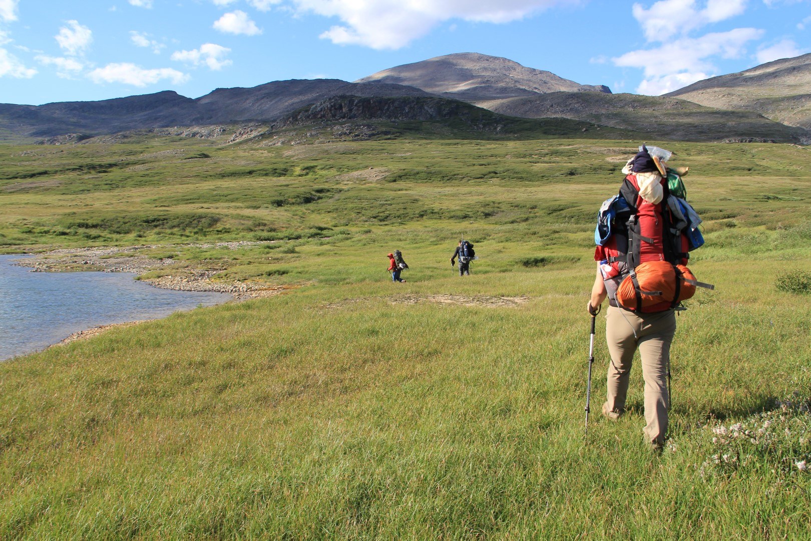 Vous partirez avec votre matériel pour franchir les 12 kilomètres qui vous séparent du camp de base. Vous suivrez la vallée qui se rend jusqu'au pied du mont Kauvvik (mont D'Iberville) où vous pourrez vous installer pour les jours suivants. Vous aurez le temps de poursuivre votre exploration des lieux et d'apprécier le sentiment de liberté qui s'en dégage.