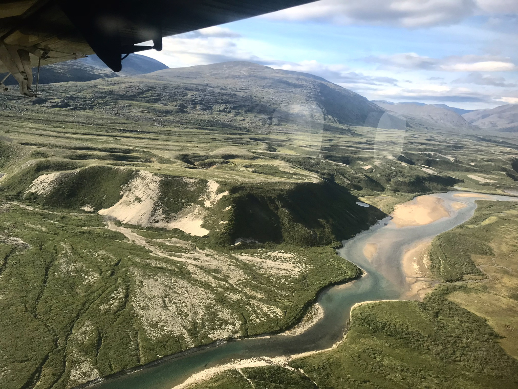 Vous vous envolerez vers la tête de la Koroc, au milieu des Torngats pour un vol panoramique de 40 minutes afin de rejoindre le départ de votre expédition. Vous suivrez la vallée de cette rivière millénaire, utilisée traditionnellement comme voie de passage entre le Labrador et le Nunavik. Le paysage se transformera progressivement et les montagnes se feront de plus en plus imposantes, jusqu'à votre point de chute. Vous pourrez partir pour une randonnée aux alentours et profiter de la vue sur la vallée.