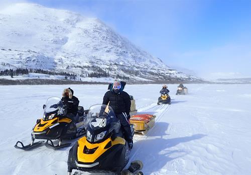 Le parc national Tursujuq est unique en son genre : trésor du Nunavik d’une superficie de 26 107 km2, il est situé près de la côte de la baie d’Hudson, adjacent à la communauté inuite d’Umiujaq. On y trouve des vestiges d’occupation humaine datant de plus de 3 000 ans et d’anciens postes de traite autrefois utilisés par les Inuit et les Cris. En hiver, il se transforme en paradis de la neige poudreuse avec ses paysages enchanteurs et ses excursions accessibles uniquement pendant la saison. C’est aussi un moment privilégié pour observer les activités traditionnelles de chasse et de pêche sur glace. Pour toutes ces raisons, Parcs Nunavik souhaite partager cette frénésie pour l’hiver.