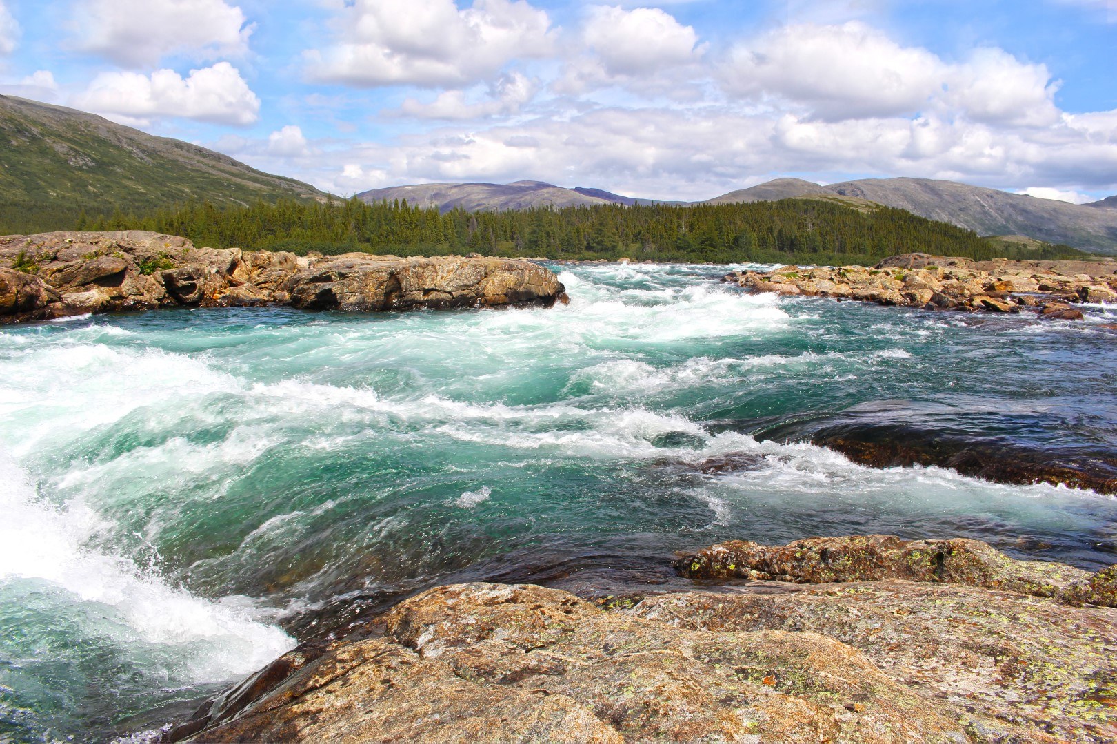 This 17 km section is most interesting for its rapids, as it offers 12 RII/III, RIII and four bigger sets of rapids. The white waters are flowing down this magnificent valley with 1500-2000 feet walls on each side. You will then arrive in the comfort of our serviced Qurlutuarjuq camp. The camp is located a few kilometers away from the magnificent Qurlutuarjuq Falls in a wooded area.
