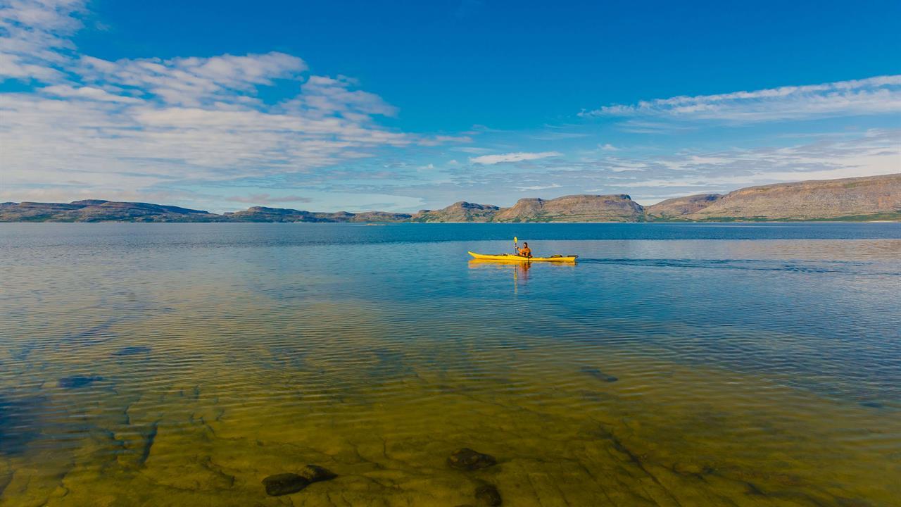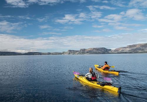 Le parc national Tursujuq est le plus grand au Québec. Avec ses 27 107km2 vous pourrez découvrir le Nunavik dans toute sa richesse au cours d'une multitude d'activités: randonnée, kayak de mer, observation de la faune et flore, bateau et plus encore. Le séjour débute dans la communauté d'Umiujaq, une première journée pour atterrir et découvrir ce village nordique et la culture locale Inuit. Le lendemain, nous partons en bateau le long de la côte de la baie d'Hudson à travers les cuestas des îles, pour découvrir la Chute Nastapoka et passer quelques heures sur la plage et faire une courte randonnée. Les jours suivants vous amènent à découvrir le secteur Nord du Lac Tasiujaq ou nous pagaierons entre 15 et 20 km quotidiennement. Un rendez-vous grandiose avec la nature qui allie randonnées spectaculaires et kayak de mer, entouré par l'immentsité d'un territoire bordé de cuestas et d'une faune et flore unique. Une expérience développée grâce à l'expertise de vos guides Inuit locaux et de leur connaissance privilégiée du territoire, afin de vous offrir un séjour inoubliable vous initiant à la magie du Nunavik et du Grand Nord. Au nom de nos guides et de notre communauté, nous vous souhaitons la bienvenue dans notre région : Tunngasugit ! Nous nous occupons de tout : vos vols depuis Montréal, vos repas, vos activités, votre équipement (tente, matelas de sol, sac de couchage...), et plus encore ! Contactez-nous pour tous les détails !